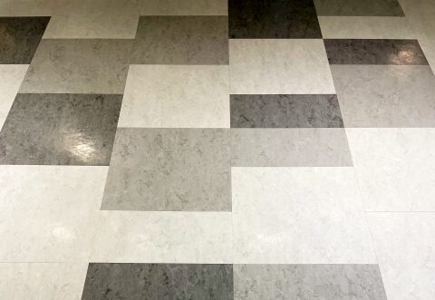 塩ビタイル(Pタイル)は、塩化ビニル樹脂を主原料とした化学床材で、リノリウムと見た目が似ているため混同されがちですが、素材や特性に大きな違いがあります。